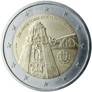 Die Rückseite der Münze zeigt eine detaillierte Darstellung der Torre dos Clérigos in Verbindung mit der Skyline von Porto. Diese künstlerische Gestaltung vermittelt den majestätischen Charakter des Turms und fängt die Essenz der Stadt ein. Oben auf der Münze ist die Inschrift „250 ANOS TORRE DOS CLÉRIGOS – 2013“ zu finden, die an das Jubiläum des Glockenturms erinnert. Im unteren Bereich rechts ist das portugiesische Wappen abgebildet, das in Kombination mit der Angabe des Ausgabestaates „PORTUGAL“ den nationalen Charakter der Münze unterstreicht. Das Münzzeichen und der Name des Künstlers, „INCM – HUGO MACIEL“, befinden sich links, wodurch die Münze auch einen künstlerischen Wert erhält. Die Darstellung der zwölf Sterne der Europäischen Union auf dem äußeren Ring der Münze symbolisiert die Zugehörigkeit Portugals zur Eurozone.