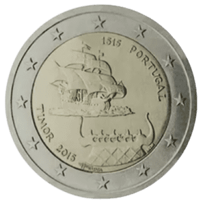 Die Euro-Münze von 2015 aus Portugal, die anlässlich des 500-jährigen Jubiläums der portugiesischen Entdeckung von Timor herausgegeben wurde, repräsentiert sowohl historische als auch kulturelle Elemente dieser besonderen Beziehung. Den Mittelpunkt der Münze bildet ein eindrucksvolles Motiv, das ein authentisches Schiff aus dem 16. Jahrhundert zeigt. Dieses Schiff symbolisiert die Ankunft portugiesischer Seefahrer auf der Insel und lässt die Bedeutung der maritimen Erkundungen in dieser Epoche lebendig werden. Unterhalb des Schiffs ist ein traditionelles, reetgedecktes Hausdach abgebildet, verziert mit charakteristischen Holzfiguren, die tief in den Mythen und Legenden der indigenen Bevölkerung verwurzelt sind. Diese Darstellungen reflektieren sowohl die Geschichte der ersten Einwohner, die mit Booten aus Asien kamen, als auch die zentrale Rolle der Pferde, die als Transportmittel in den gebirgigen Regionen der Insel erfreute.
