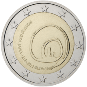 Die Gedenkmünze „800 Jahre Höhlen von Postojna“ wurde im Jahre 2013 von Slowenien herausgegeben, um das beeindruckende Naturwunder der Postojna-Höhlen zu würdigen. Diese Höhlen zählen zu den bekanntesten Karstformationen weltweit und ziehen jedes Jahr zahlreiche Touristen an. Das Design der Münze vermittelt die Faszination der Höhlen und basiert auf der langen Geschichte der Entdeckungen in dieser einzigartigen Umgebung. In der Mitte der Münze ist eine stilisierte Spirale abgebildet, die den Verlauf der Höhlen symbolisiert. Die jahrelange Erosion hat zur Bildung der faszinierenden Tropfsteinformationen geführt, die ebenfalls kunstvoll zwischen den Spiralen integriert wurden. Der Schriftzug „POSTOJNSKA JAMA • 1213–2013 • SLOVENIJA“ ist auf der linken Seite verewigt, was den Anlass dieser Gedenkprägung unterstreicht.