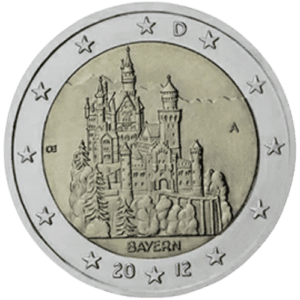 Die Euro-Münze aus der Bundesländerserie, die Bayern repräsentiert, ist ein faszinierendes Sammlerstück, das im Jahr 2012 ausgegeben wurde. Mit einer Auflage von 30 Millionen Exemplaren ist diese Münze eine der populärsten unter den deutschen Euro-Gedenkmünzen. Sie zeigt in ihrem Inneren das majestätische Schloss Neuschwanstein, das als Symbol für die bayerische Kultur und Geschichte gilt. Das Schloss, das mit seinen romantischen Türmen und der eindrucksvollen Berglandschaft im Hintergrund abgebildet ist, zieht jedes Jahr Millionen von Touristen an und verkörpert die bayerische Lebensart in einzigartiger Weise. Unter dem Motiv befindet sich der Schriftzug „BAYERN“, der deutlich macht, dass es sich um die Münze des Freistaates Bayern handelt.